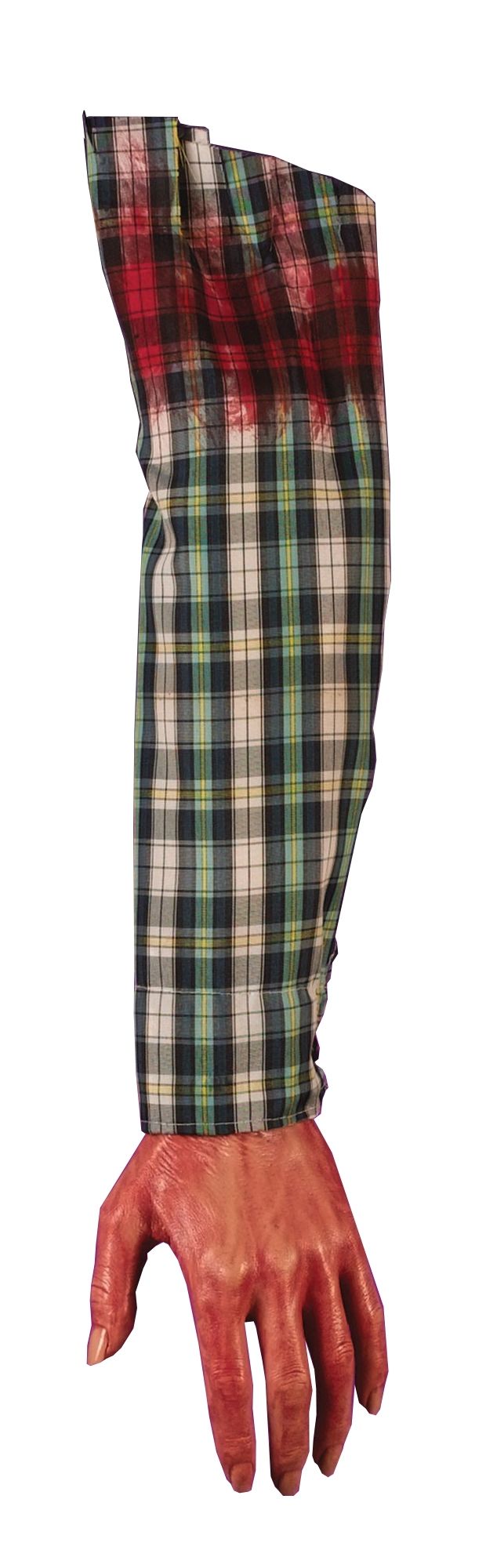 Кровавая рука в клетчатом рукаве представляет собой кровавую кисть, торчащую из рукава, который забрызган кровью. Такая рука может стать хорошей декорацией на Хэллоуин.