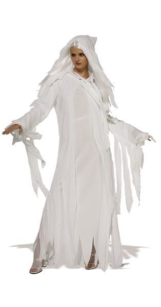 В костюм призрачного духа входит: платье, марлевое пальто с капюшоном, парик.