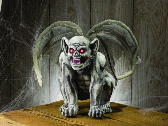 Крылатая горгулья - это статуэтка, которая выполнена в серых тонах, на спине горгульи имеются немного рваные крылья. Больше уши, клыки и светящиеся глаза - при виде этого становится немого жутко. Эту статуэтку можно использовать в качестве украшения на Хэллоуин. Размер статуэтки достигает 30 см. В комплекте имеется две батарейки(АА).