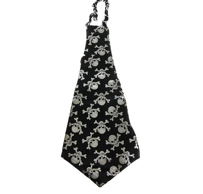Галстук гигант черный с серебряными черепами для настоящего пирата, грозы морей и океанов.