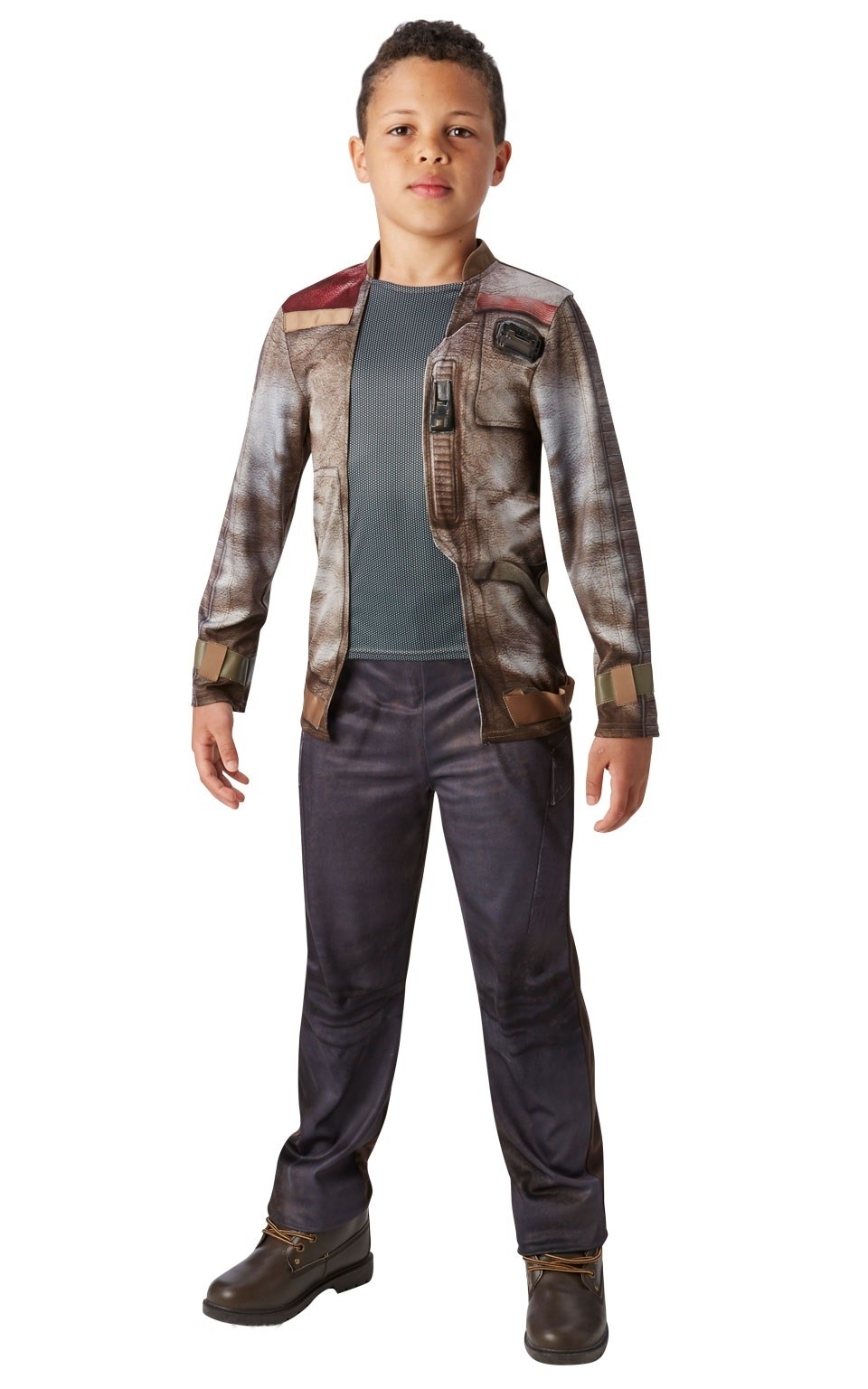 Детский костюм Финна Star Wars - костюм одного из героев саги "Звездные войны". В комплект входит футболка с имитацией сетчатого топа с курточкой с принтом под кожу, а также синие брюки.