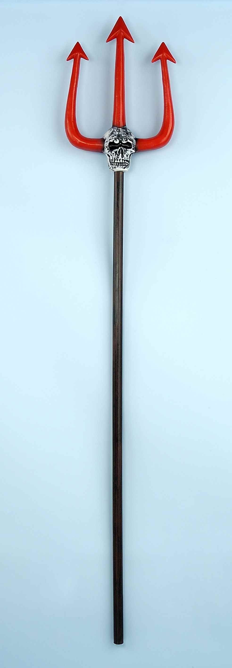 Гигантские вилы с черной рукояткой. Сами вилы выполнены в красном цвете и украшены черепком, их размер около 15 см.