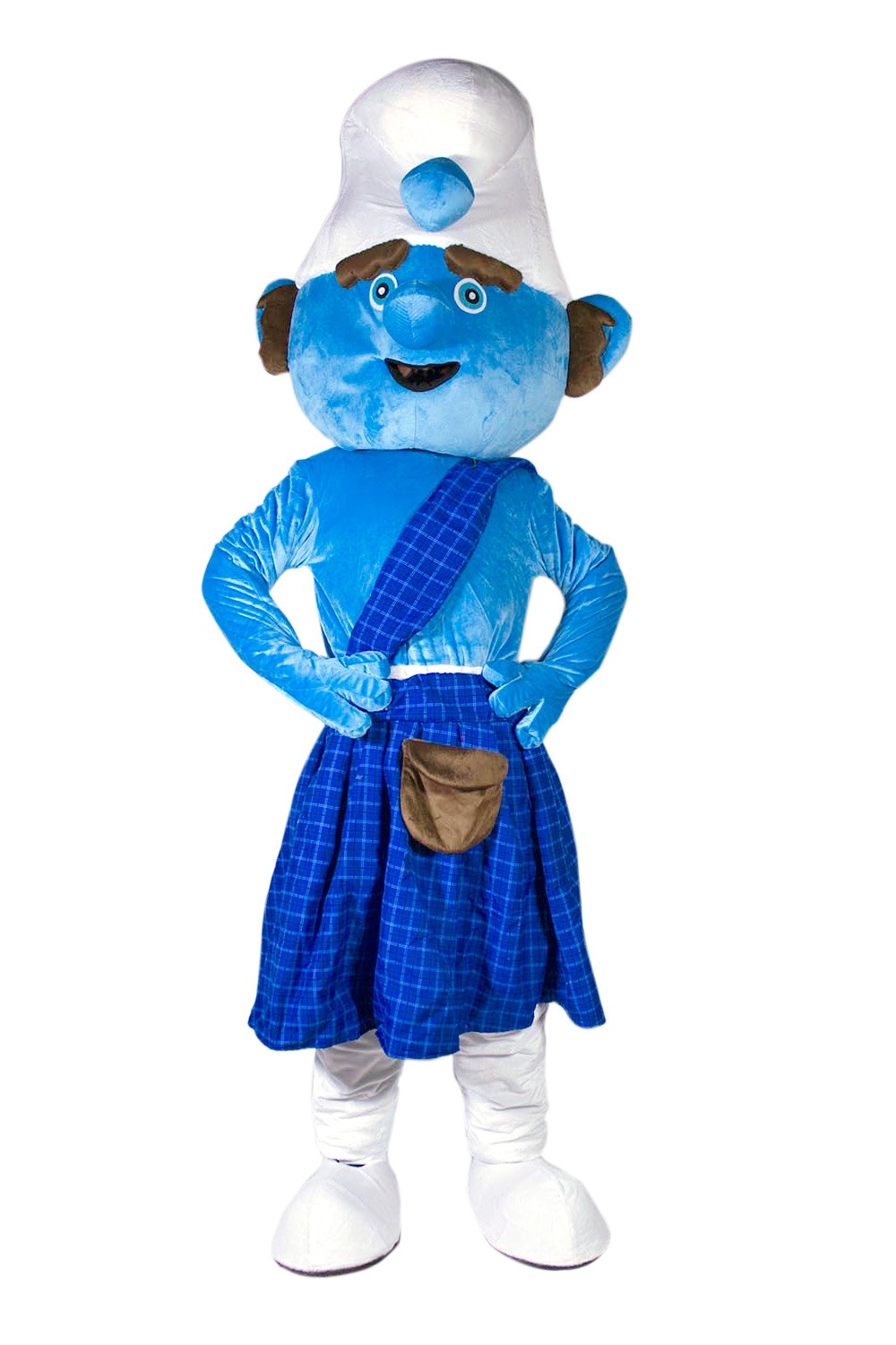 Ростовая кукла смурфика-шотландца - яркий плюшевый костюм, который представляет собой одного из героев мультсериала "Смурфики".
