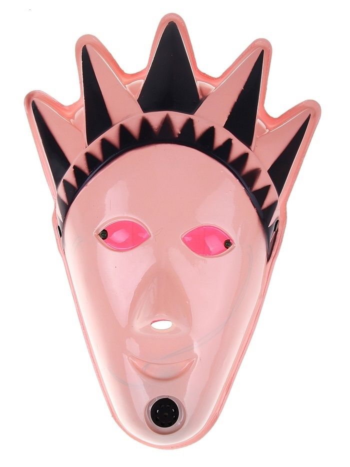 Маска индейца музыкальная розового цвета с горящими глазами. Маска изготовлена из пластика и имеет размер 24х35 см.