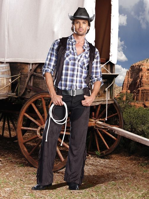 Костюм западного ковбоя понравится всем мужчинам, которые увлекаются Диким Западом. В комплекте костюма западного ковбоя имеется жилет, пояс и ковбойская шляпа. Вам остаётся только подобрать рубашку и штаны. В этом костюме вы можете отправится на маскарад или карнавал.