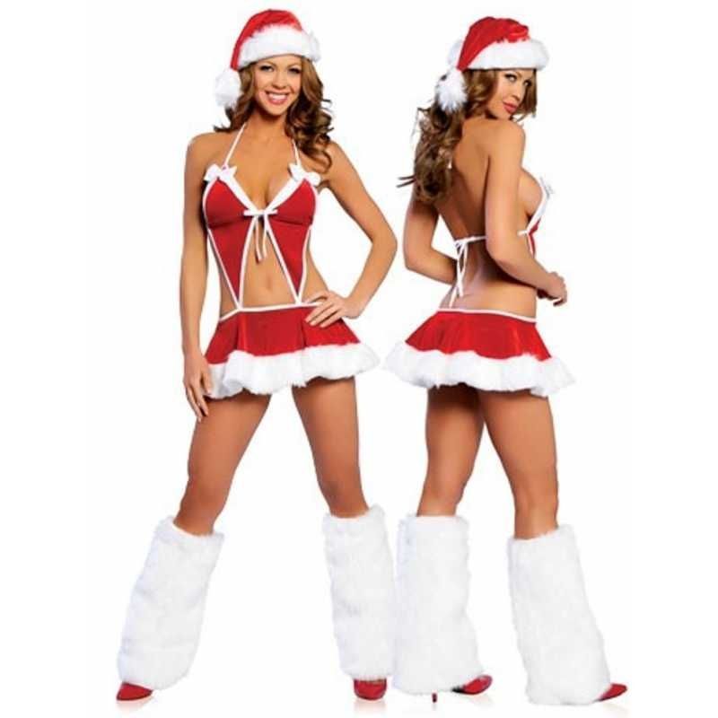 Очень классный новогодний костюм экзотической Санты подчеркнет все достоинства вашей фигуры и сделает новогоднюю ночь незабываемой. В костюм экзотической Санты входит юбка с топом, шапочка Санты и длинные меховые накладки на сапоги.