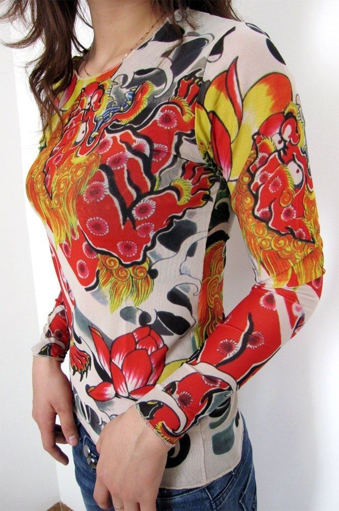 Полупрозрачная футболка с татуировкой-драконом. Универсальная, подойдет для девушек и для парней.