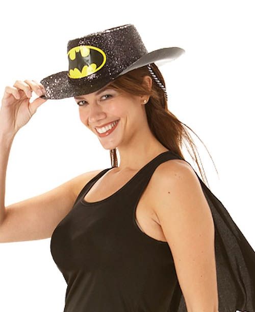 Блестящая шляпа Бэтвумен - это черная шляпа строгой формы с большими полями. Шляпа покрыта блестками. Спереди имеется желтая эмблема Бэтмена. Такая шляпа дополнит различные женские костюм Бэтвумен и другие подобные образы.