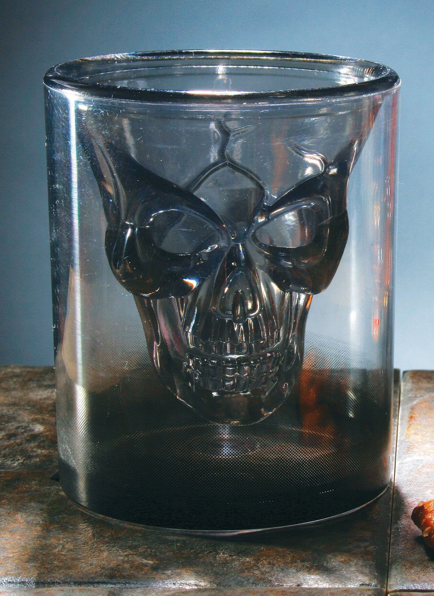 Стакан Плавающий череп серый будет идеально смотреться на столе в честь Хэллоуина. Стакан выполнен из серого стекла, внутри него находится литой череп, который также выполнен в сером цвете. В череп наливаются различные напитки. Стакан вмещает в себя около 80 мл.