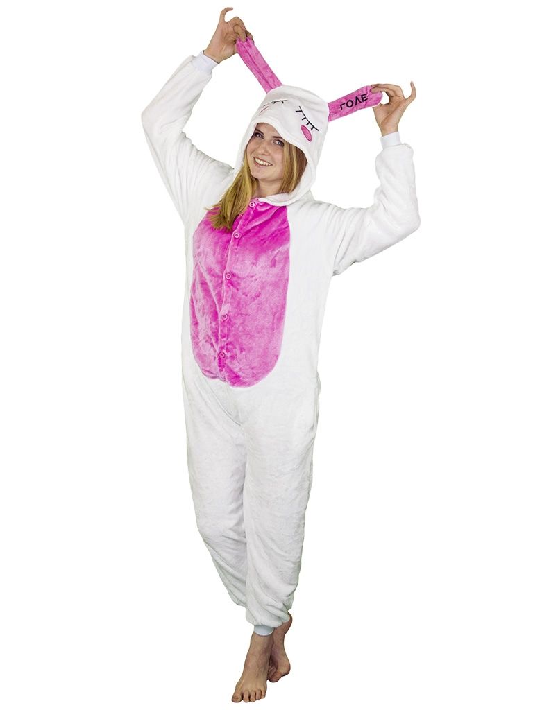 Кигуруми влюбленного кролика сделано из мягкого и приятного для тела материала, поэтому кигуруми можно использовать как пижаму и одежду для дома. Капюшон выполнен в виде головы зайца с розовыми ушками.