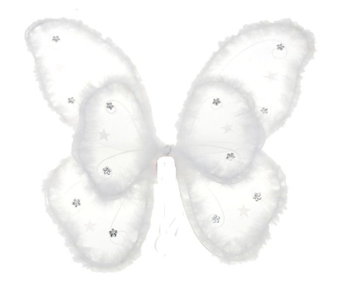 Крылья мотылька белого цвета, декорированные пухом и цветочками. Крылья помогут перевоплотиться в фею, бабочку или волшебницу. Размер крыльев 52х57 см.