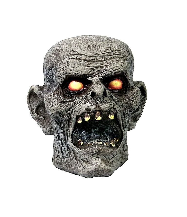 Декорация Голова с желтыми глазами - пластиковая декорация, выполненная в виде жуткой серой головы с желтыми глазами и желтыми страшными зубами.