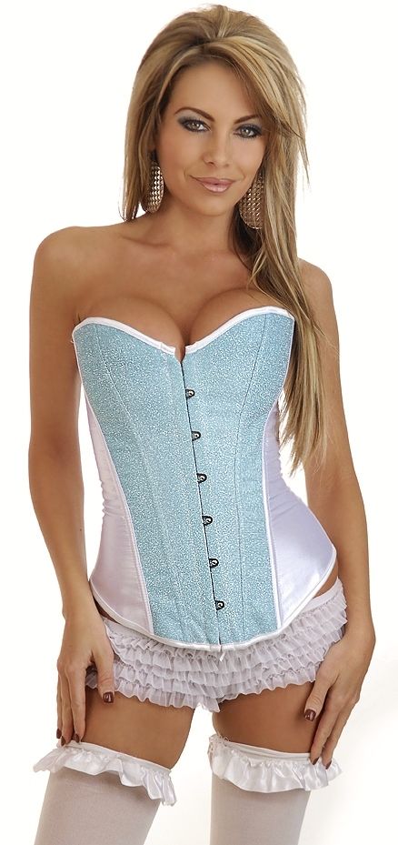 Корсет - голубой бурлеск придаст силуэту женственность и подчеркнет талию. Корсет на застежках спереди и шнуровке сзади. В комплекте идут стринги.