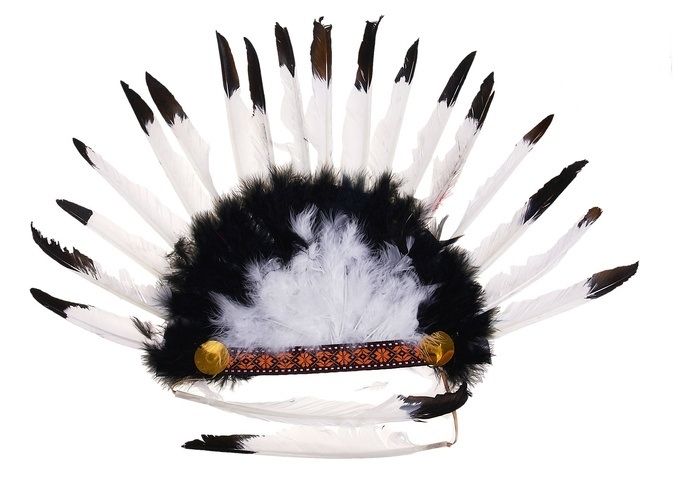 Головной убор индейца из черно-белых перьев станет прекрасным дополнением к костюму индейца и поможет сделать образ наиболее полным и совершенным.