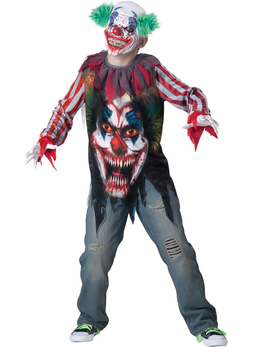 Если вы думает, что клоуны бывают только в цирке и для того, чтобы смешить детей, то вы глубоко заблуждаетесь. Достаточно посмотреть на костюм жуткого клоуна, чтобы навсегда забыть о смехе и фокусах. В костюм жуткого клоуна входит рубашка с принтом лица клоуна, воротник, маска. Перчатки в комплект не входят, но вы можете приобрести их дополнительно на нашем сайте.