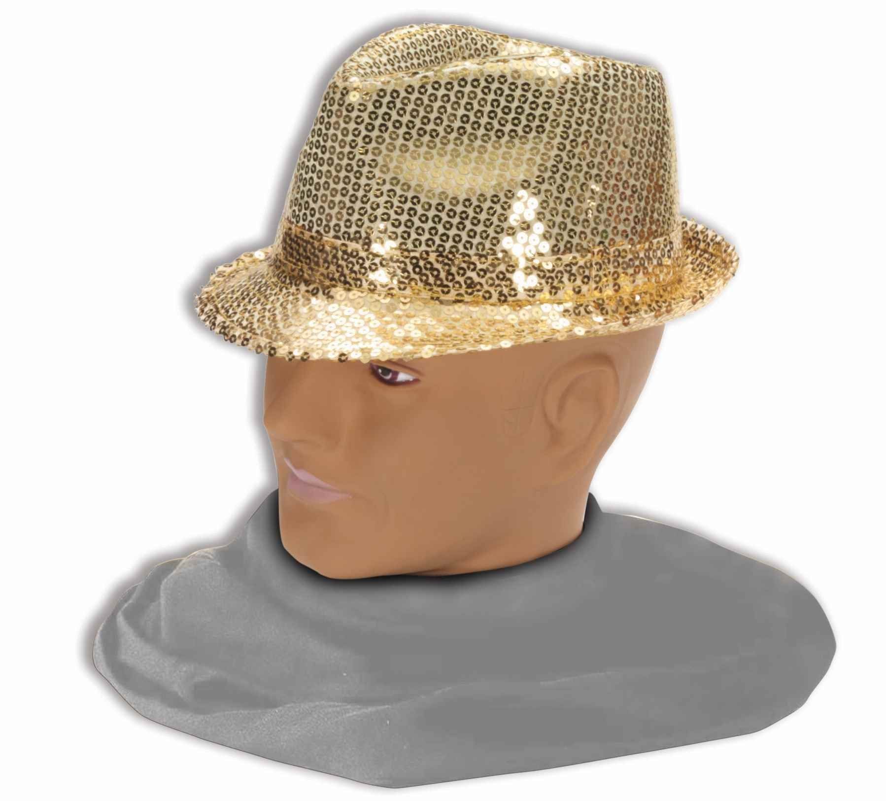Шляпа федора золотистая - это шляпа выполненная в стиле федора в золотом цвете. Шляпу украшает ремешок и блестящие пайетки золотистого цвета. Идеальна для клубных нарядов.