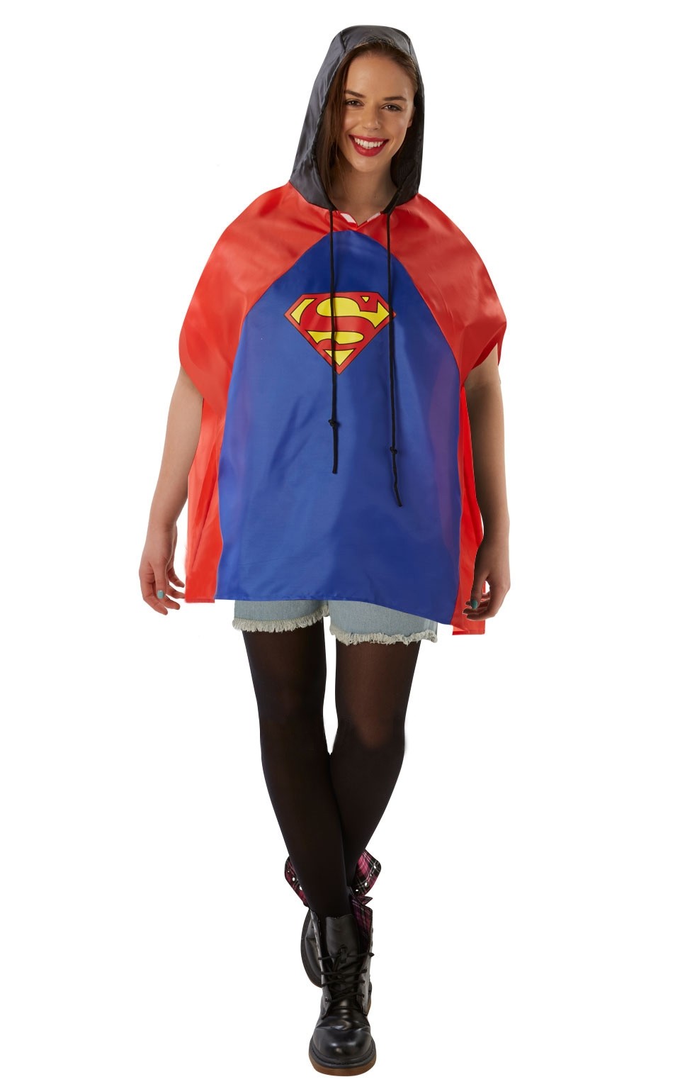 Плащ-накидка Супермен с капюшоном поможет быстро перевоплотиться в известного супергероя. Плащ выполнен в сине-красном цвете, на груди имеется эмблема Супермена.Рекомендации по уходу: бережная ручная стирка при 30 градусах.
