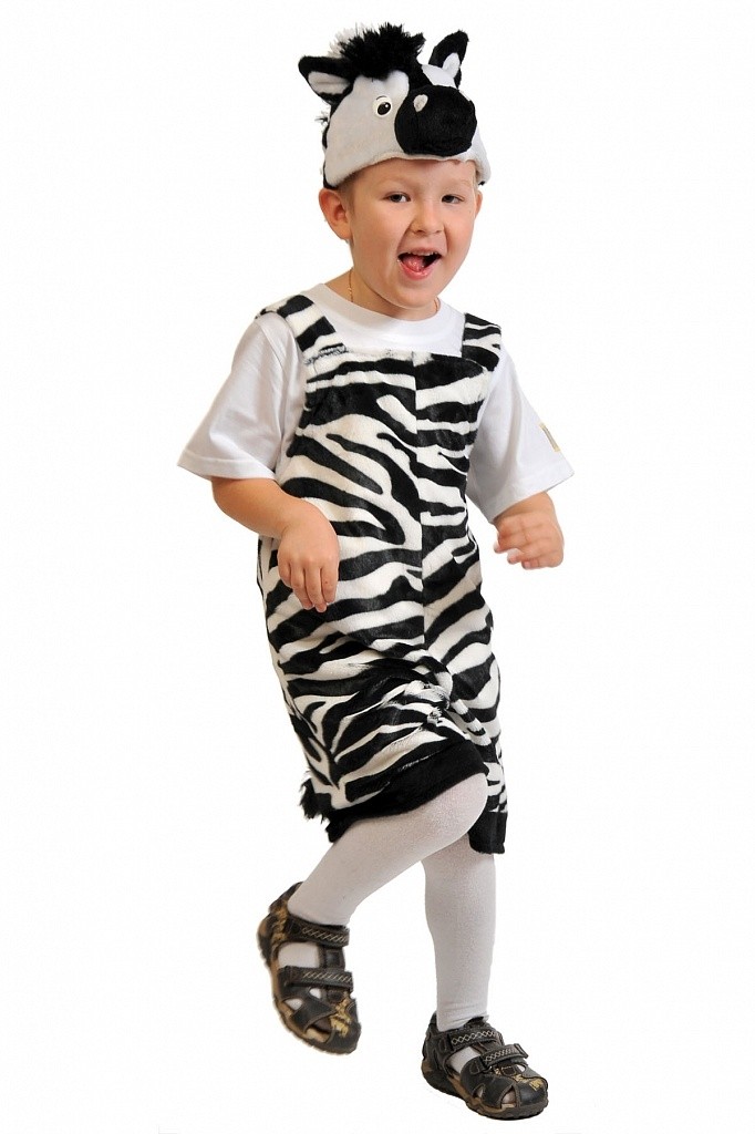 Плюшевый костюм Зебры выполнен из мягкого плюшевого материала черно-белого цвета. В комплекте комбинезон в зебровой расцветке, а также маска-шапочка в виде мордочки зебры с ушками и небольшой черной гривой.