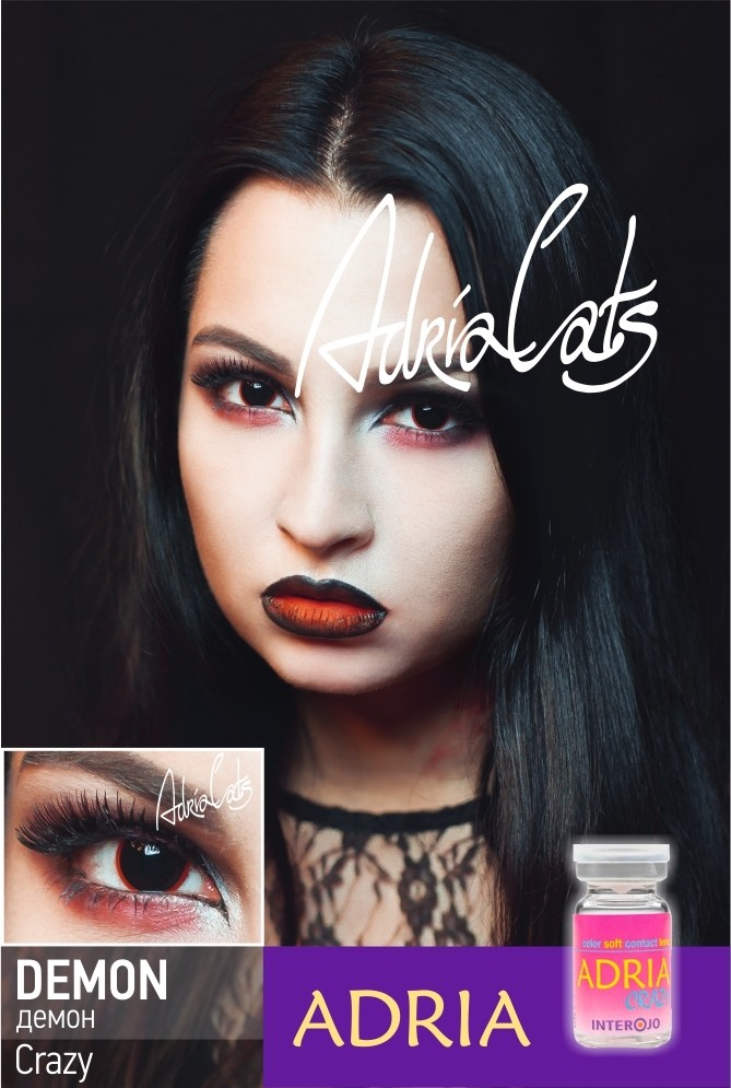 Демонские черные линзы- темные линзы, которые перекрывают полностью цвет глаз. Линзы выполнены в черном цвете с красным тонким ободком.