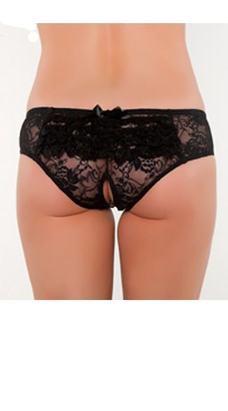 Перед вами сексуальные черные трусики с кружевами для соблазнения. Особая деталь - открытая промежность.