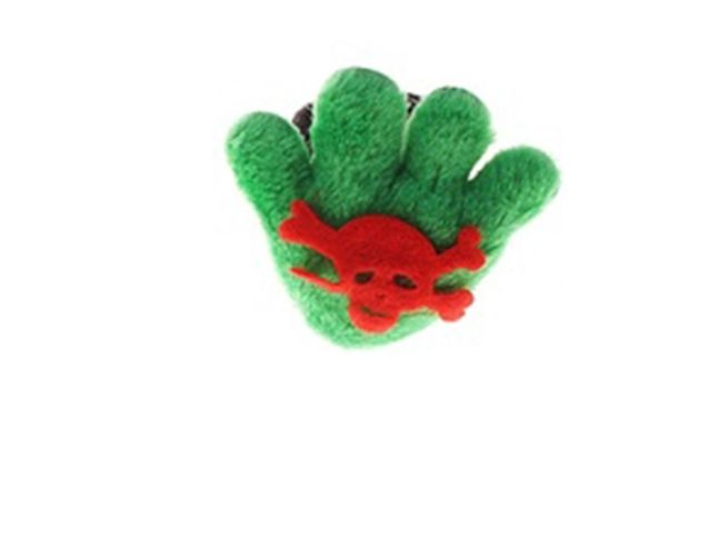 Браслет для Хэллоуина Черепок - черный браслет, украшенный зеленой яркой рукой с красным черепком. Браслет на магните.
