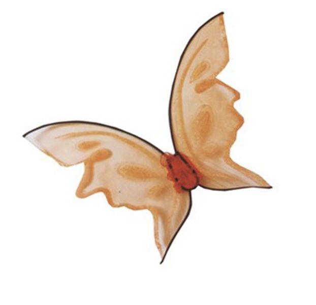 Яркие оранжевые крылья бабочки придадут легкости и нежности в ваш образ. Крылья выполнены из оранжевого тонкого материала с узорами, который прикреплен к дугообразному каркасу. Края крыльев узорчатые. Они хорошо держатся на плечах при помощи мягких резинок.