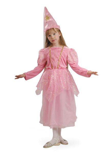 В комплект карнавального костюма сказочной феи входит платье и колпак.