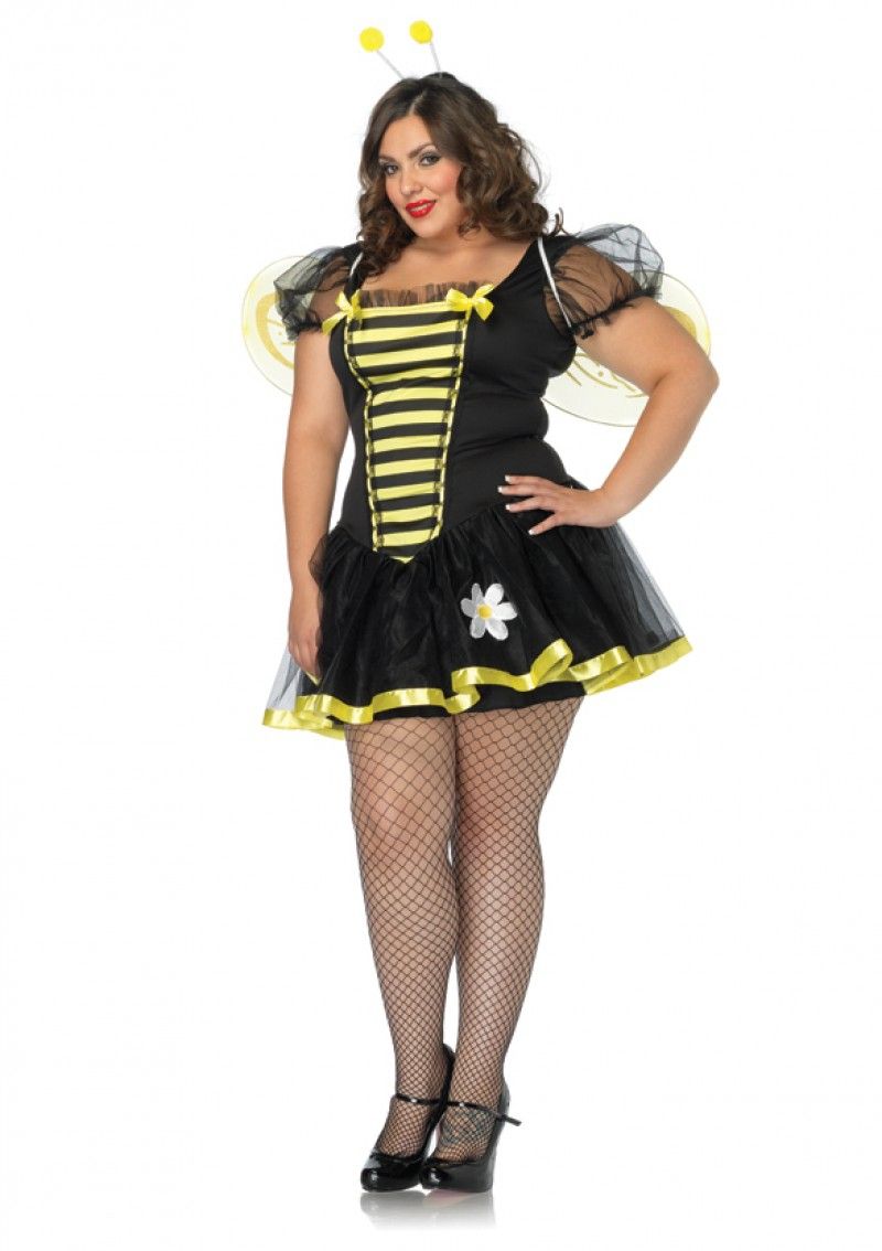 Костюм пчелки Дейзи XL включает в себя короткое черное платье с желтой отделкой и полупрозрачными рукавами-фонариками, желтые сетчатые крылышки и желтые рожки-антенки.