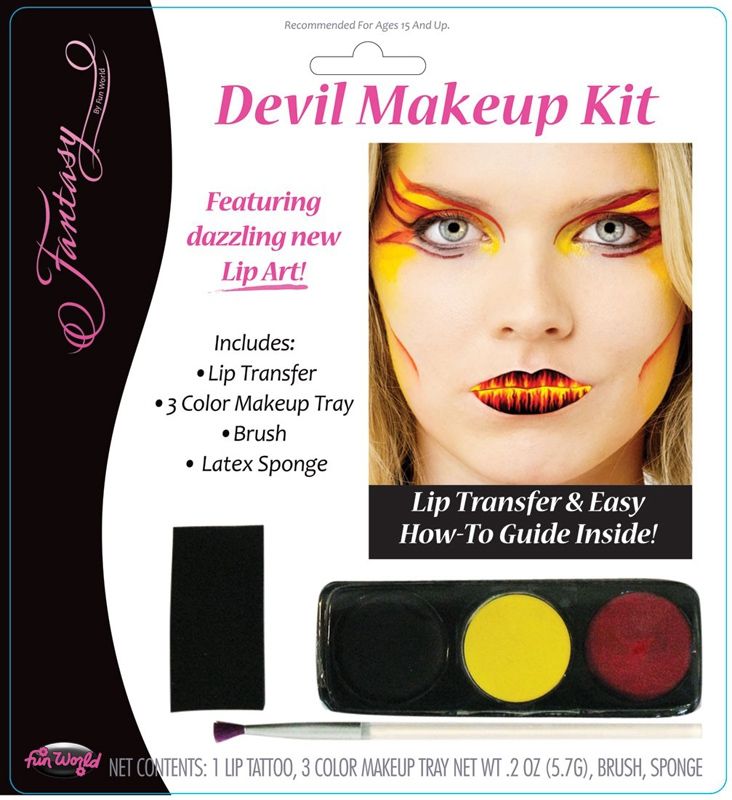 Макияж для дьявола прекрасно дополнит ваш огненный образ дьявола. В наборе имеется косметика трёх цветов: чёрная, жёлтая и бардовая, также прилагается руководство по использованию, губка и кисточка.