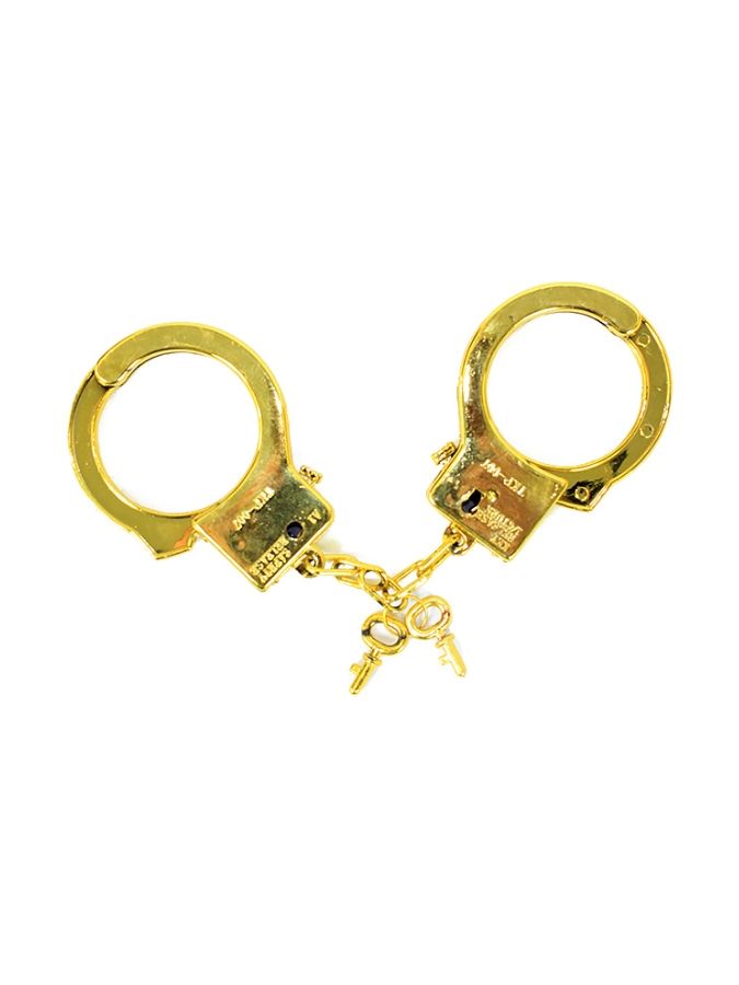Золотые наручники выполнены из пластикового материала с золотистым покрытием. К наручникам прилагается два маленьких ключика.