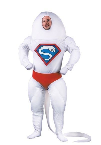 Костюм супер осеменителя выполнен в белом цвете с красными трусами и сине-красной эмблемой на груди. В комплект костюма входит комбинезон с хвостом, а также перчатки. Этот костюм прекрасно подойдёт для карнавалов, маскарадов и тематических вечеринок. В этом наряде вы будете выглядеть весьма забавно и каждый захочет с вам сфотографироваться.