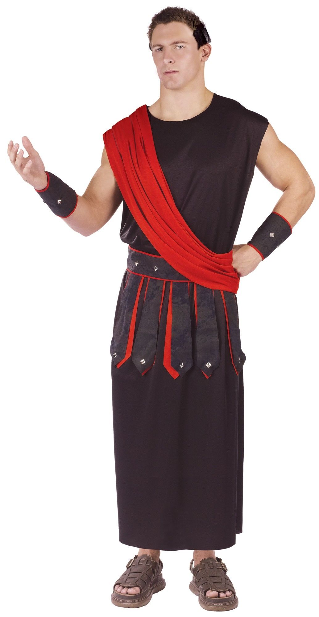 Костюм императора Калигула включает в себя черную длинную тунику без рукавов, красную пелерину через плечо, черные манжеты с красной обводкой, а также черный пояс со свисающими красно-черными полосками материала. Костюм завершает венок на голову.