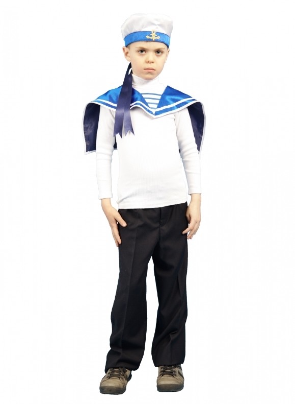 Набор матроса состоит из бескозырки и накидки на плечи. Способ ухода за изделием: ручная стирка при температуре 30 С° с применением нейтральных моющих средств. Не отжимать. Не сушить в машине. Гладить при низкой температуре.