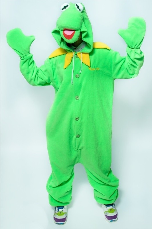 Кигуруми Лягушонка Кермита представляет собой образ одного из героев из известного Маппет Шоу. Кигуруми выполнен из мягкого плюшевого материала зеленого цвета. Кигуруми на пуговицах, на капюшоне затяжные белые шнурки. Капюшон выполнен в виде забавной мордочки лягушки Кермита. К рукавам крепятся съемные варежки.