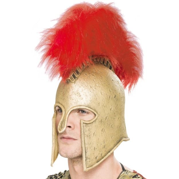 Римский военный шлем золотого цвета, украшен роскошным красным плюмажем. Материал: резина (Чулки, туфли, сапоги, грим, парик, головные уборы и прочие аксессуары для дополнения образа вы также найдете в нашем каталоге).Рекомендации по уходу: Только чистка по месту загрязнения.