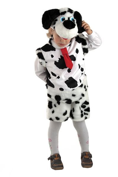 В комплект костюма забавного далматина входят маска, плюшевая безрукавка и шортики.