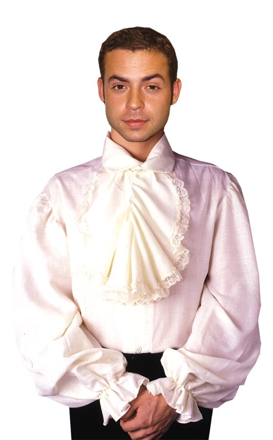 Белая мужская рубашка с жабо на пуговицах подойдет для создания образа мушкетера, герцога и высшей знати.Рекомендации по уходу: Только чистка по месту загрязнения.