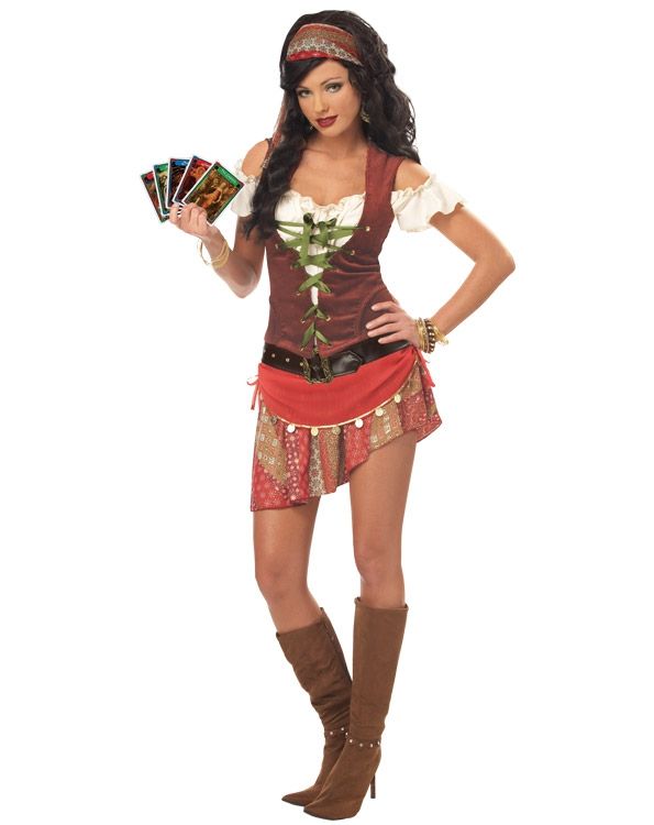 В комплект этого костюма входит платье с корсетом, карты таро, ремень и повязка на волосы.