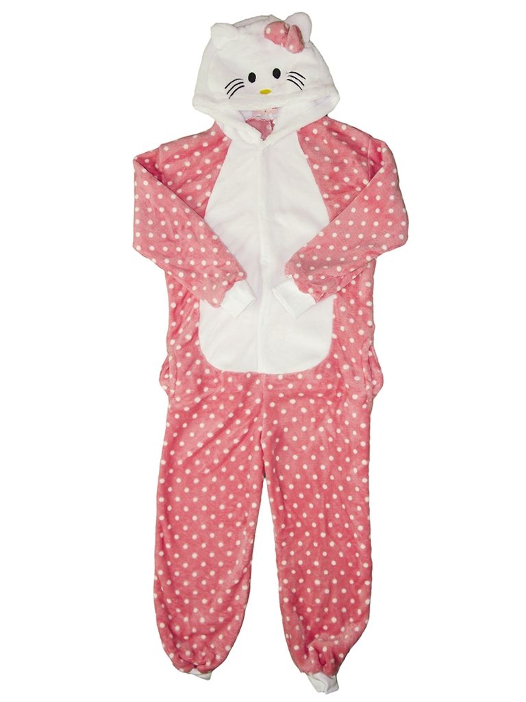 Детская пижама кигуруми HelloKitty - ярко-розовая пижама в белый мелкий горошек, выполнена из мягкого материала, который приятно прилегает к телу. Пижама с белым капюшоном с мордочкой кошечки и розовым бантиком.