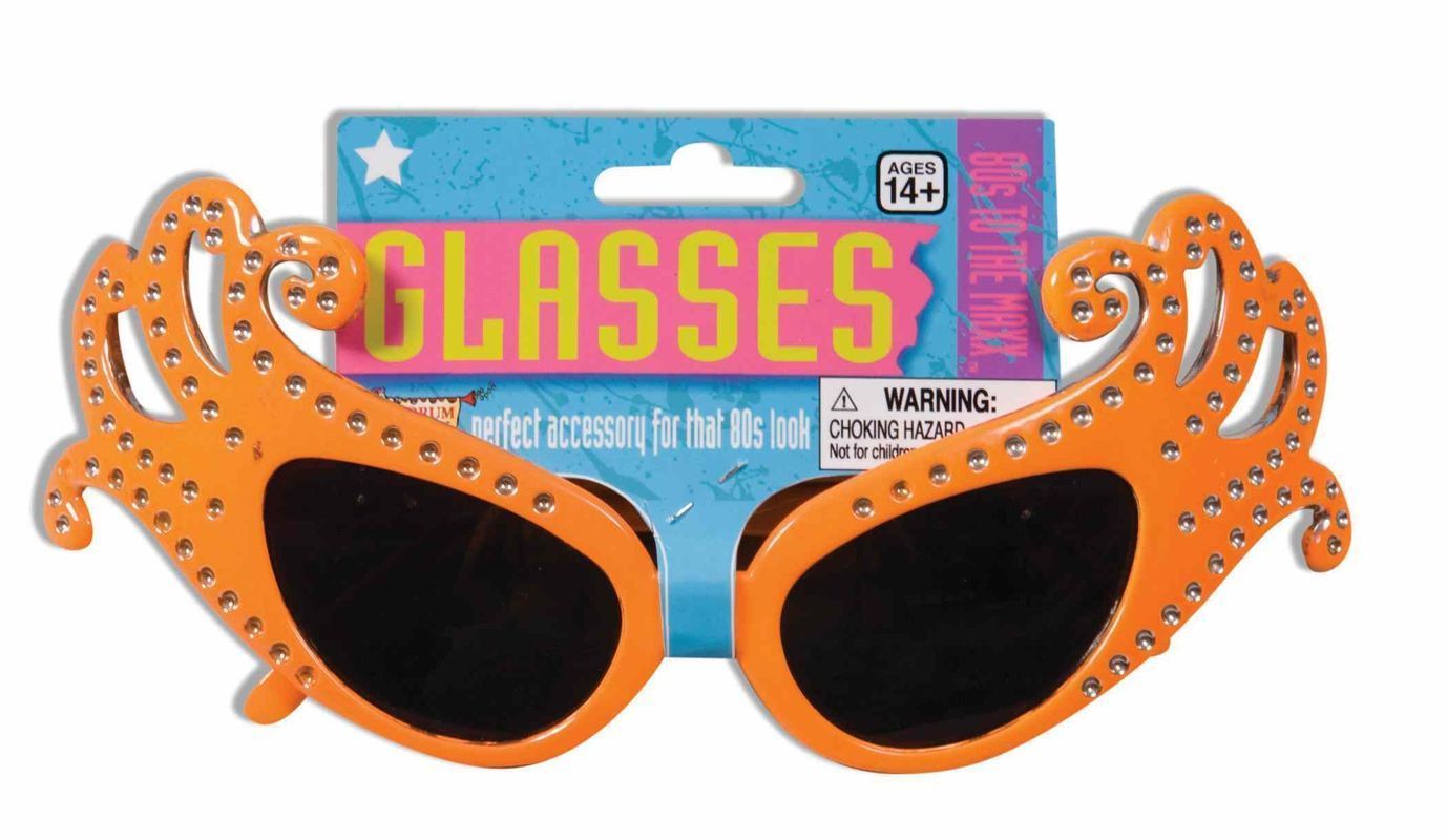 Оранжевые очки 80-х со стразами - это яркий аксессуар к клубным платьям и другим костюмам. Эти очки будут хорошо сочетаться с костюмами оранжевого, белого цвета. Подобрав к ним правильный наряд, вы можете смело отправиться на музыкальный концерт или же на маскарад или карнавал.