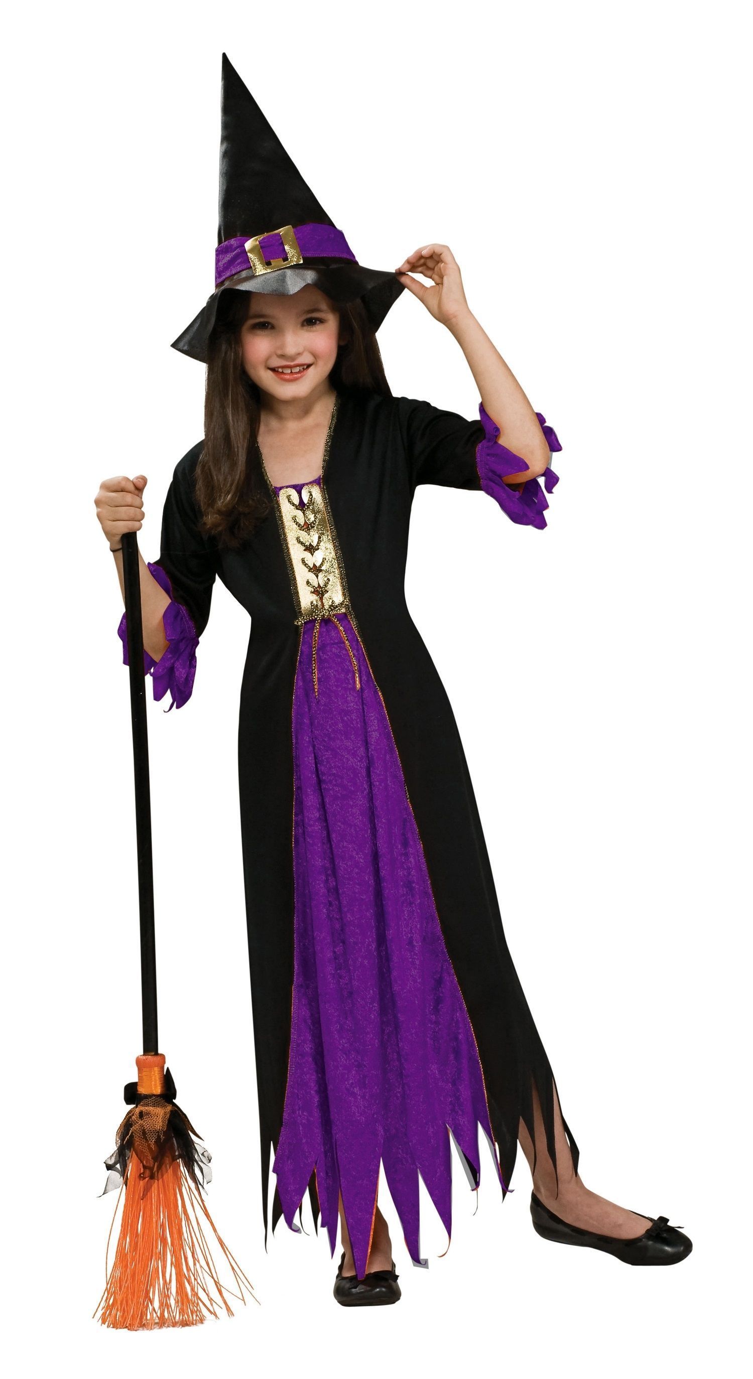 В комплекте: очаровательное платье и шляпа. Метла и аксессуары можно приобрести отдельно.