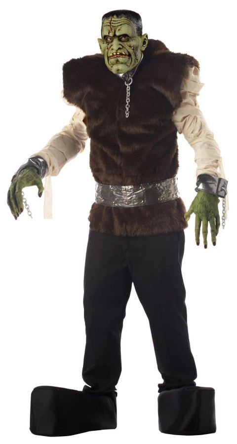 Костюм монстра из лаборатории - это прекрасный костюм для постановки спектаклей, для вечеринок в честь Хэллоуина, Пятницы 13 и подобных мероприятий. Костюм включает в себя рубашку с поясом, оковы с цепями, ошейник, зелёную латексную маску, латексные руки и огромную квадратную обувь. Берегитесь все этого монстра!