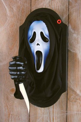 Светящаяся маска крика с ножом - это имитация зеркала, из которого якобы выскакивает призрачное лицо и светится и при этом размахивает ножом. Это прекрасная декорация для Хэллоуина. Ваши гости будут весьма напуганы, увидев такое.