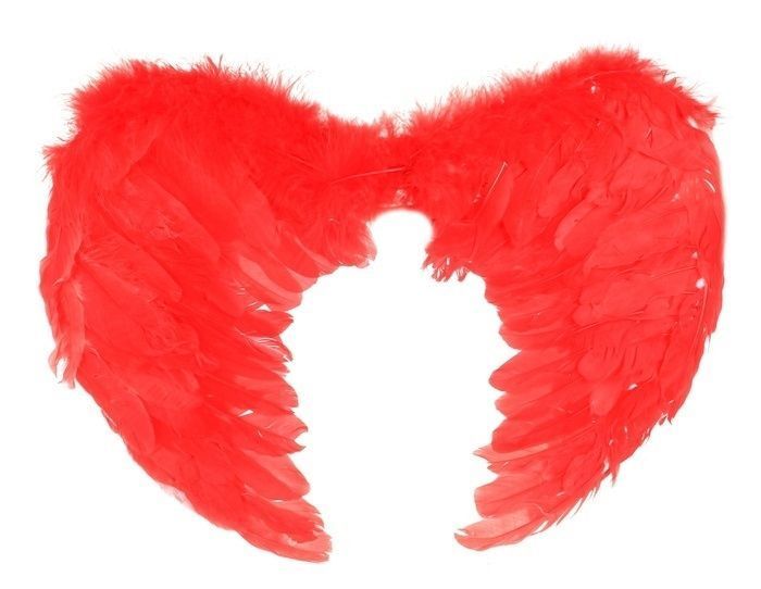 Крылья ангела красного цвета с перьями. Размер крыльев 60х60 см. Крылья отлично дополнят карнавальный костюм ангела в День Святого Валентина или на Рождество.