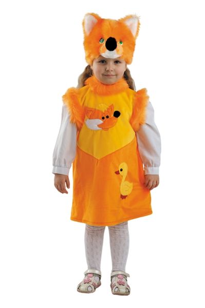 В комплект карнавального костюма хитрой лисички входят плюшевые маска и сарафан.