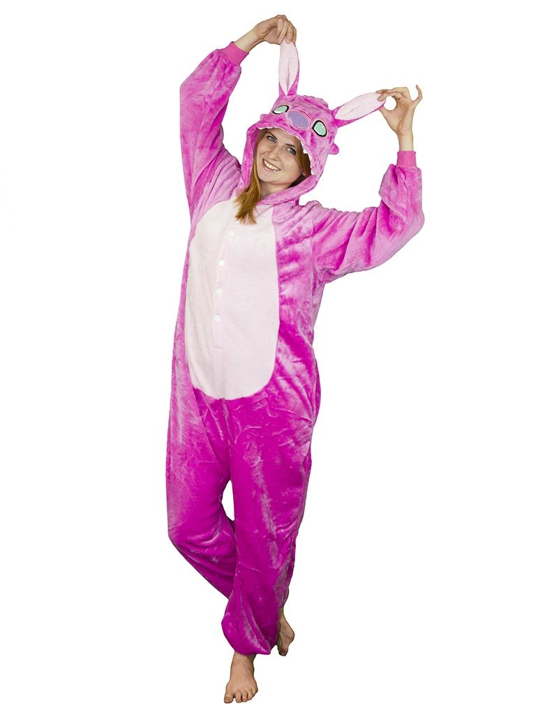Розовая пижама-кигуруми Стич украсит собой любительницу пижамных пати или просто согреет в холодную ночь. Застегивается сзади на молнию, так же спереди есть пуговицы.