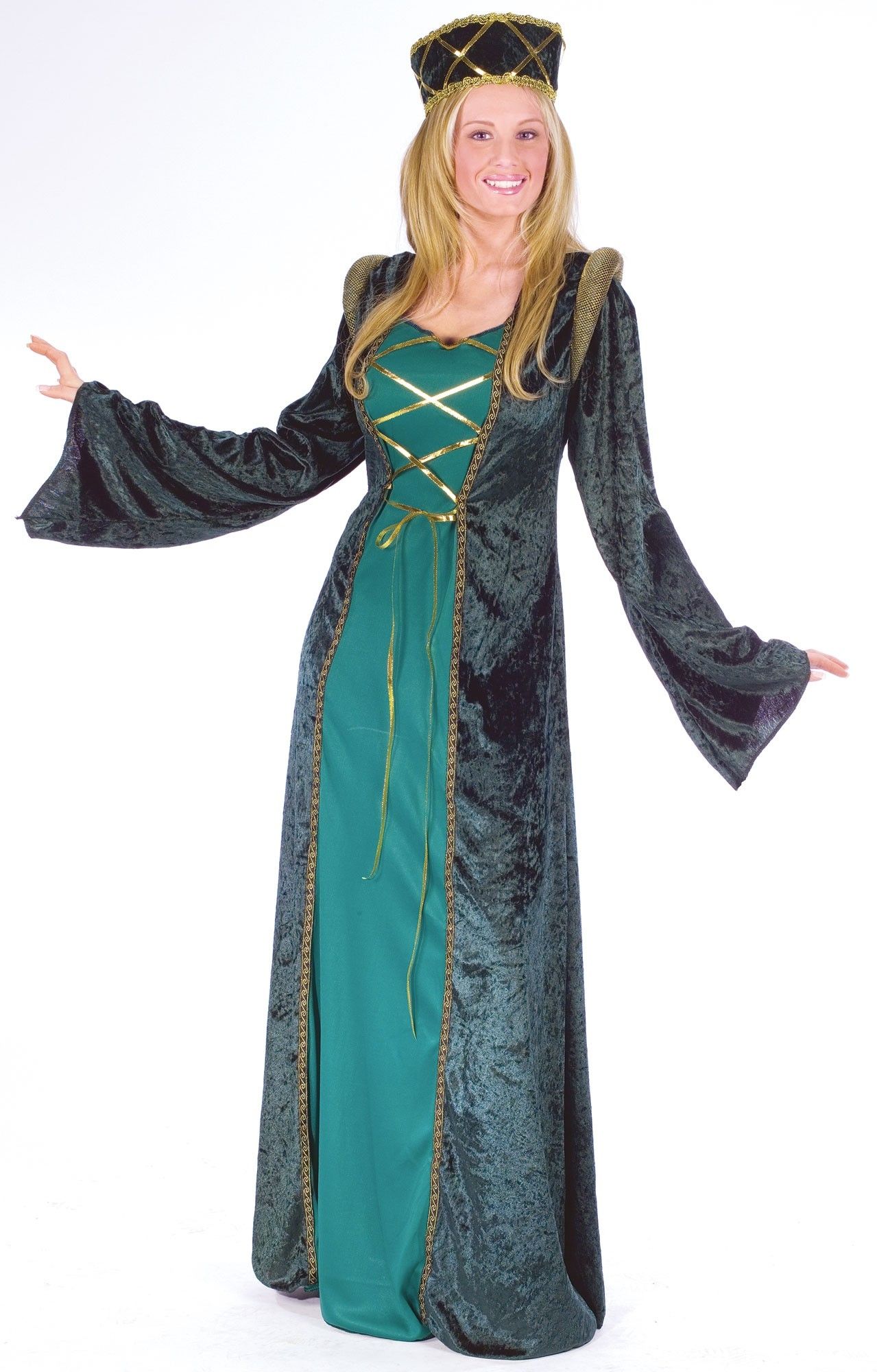 Костюм Леди в ожидании - это костюм в стиле Ренессанс. В костюм входит длинное бархатное платье темно-зеленого цвета. По середине имеется вставка чуть более светлого тона, а также золотистая тонкая шнуровка. Рукава у платья слегка расклешены к низу. К платью прилагается высокая круглая шляпа темно-зеленого цвета с украшением из золотой тесьмы.