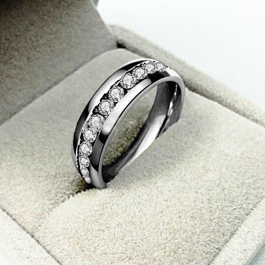 Серебряное кольцо с бриллиантами - стильное кольцо из нержавеющей стали с рядом аккуратных сияющих камней. Роскошный аксессуар, который точно не останется незамеченным.