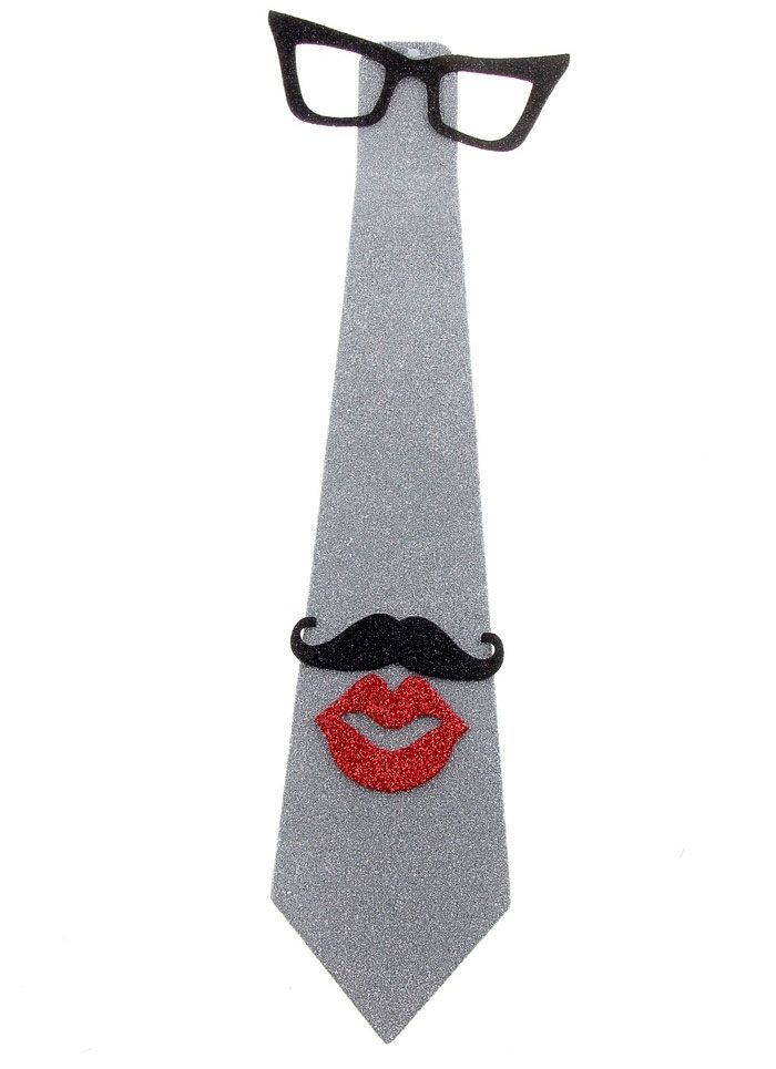 Карнавальный галстук очки, усы и губы серебро хороший выбор на день юмора или просто, чтобы вызвать улыбку у окружающих.