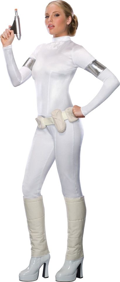 Данный костюм для любительниц Звездных войн. Вы будете звездой в этом супергеройском костюме. Данный костюм прост и лаконичен. Эта версия костюма представляет собой комбинезон с поясом, накладками на обувь и пистолетом. Белоснежный комбинезон плотно прилегает к фигуре, подчеркнув тем самым все Ваши достоинства.